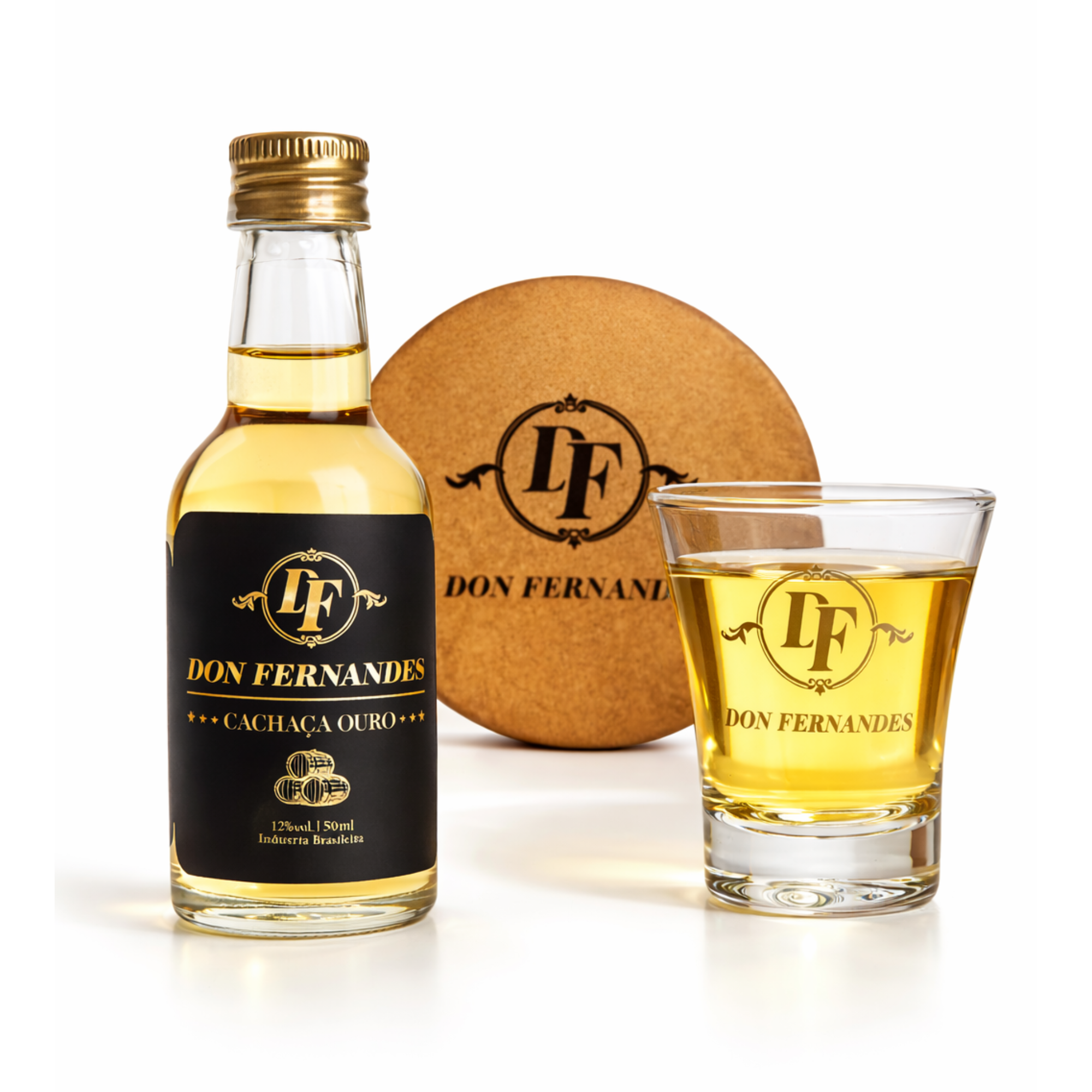- 1 Mini Cachaça Don Fernandes 50ml (garrafa de vidro);